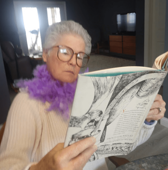 So, yes, there are some similarities. I did work very hard at home. Fenced with my dad and hiked and biked instead of playing softball or tennis. Happily dressed in old beat-up clothes to paint or do heavy work. Dressed much older than my age in other ways; instead of pleated skirts and knee-high socks, I wore sophisticated pencil skirts, fitted sweaters, nylons and ballet flats.